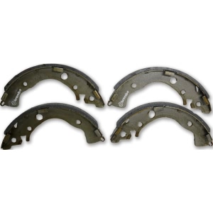 Brake shoe set principlesDrum brakes are composed of a pair of shoes that supply the metal frames for friction linings. The shoes are attached to the backing plate by hold-down springs, and function by the pistons in a hydraulic wheel cylinder. Also, when the brakes are applied the lining presses against the surface. The friction lining can also be attached to the shoes, and there are also two types of brake shoe configurations which are non-servo and duo-servo brakes.